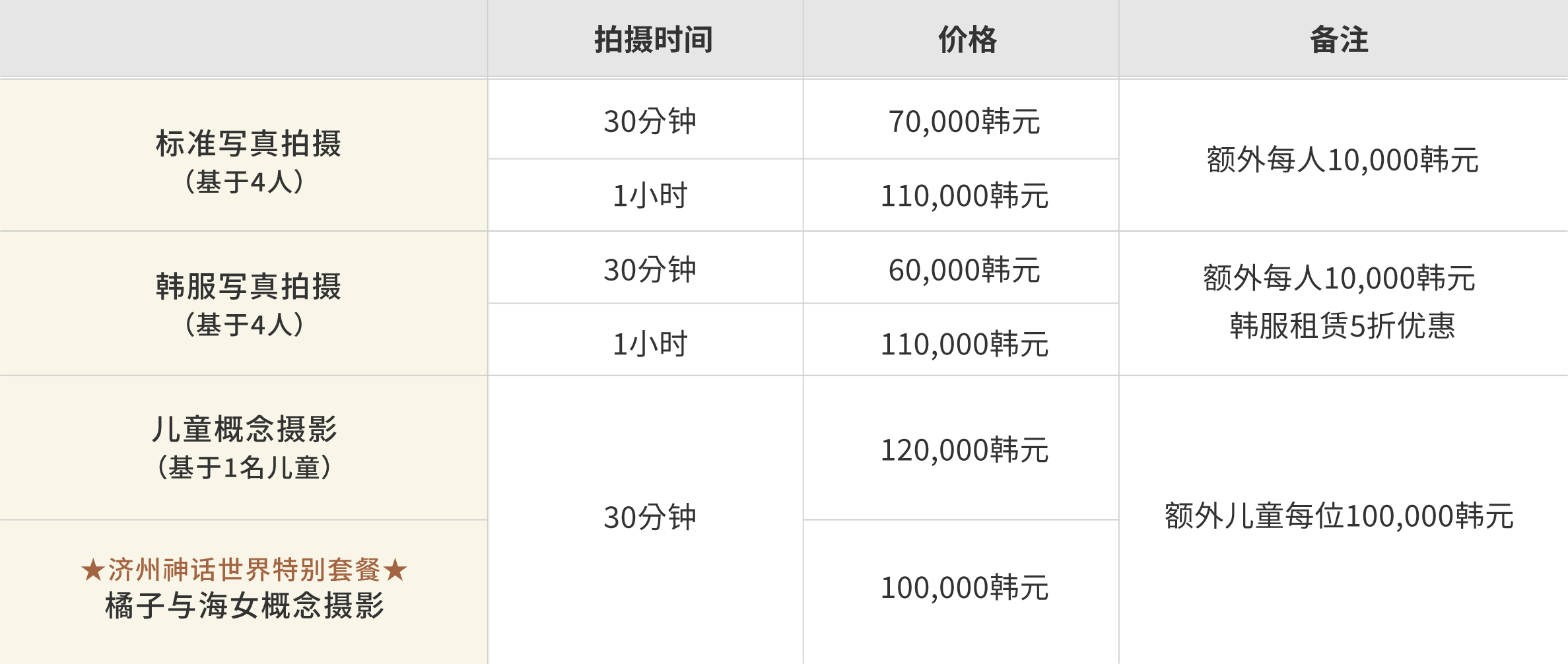 济州神话世界新近开设专业户外快照拍摄的Nuvo工作室!请与家人、朋友、恋人一同,在济州神话世界的异国风情中,以照片留下特别的瞬间吧。获得设计专利的宝宝主题拍摄,蕴含了海女、济州柑橘等济州独有情感,以独特的主题为您带来特别的体验。更可在备有各种尺寸和年龄段韩服的Wingles