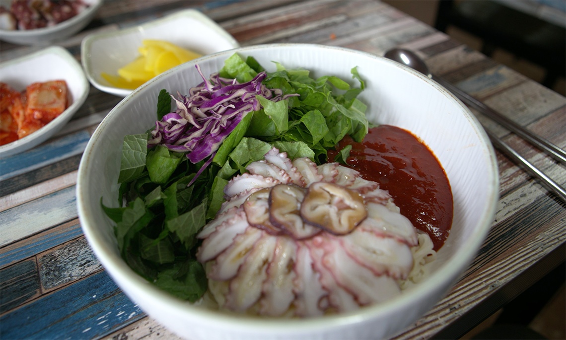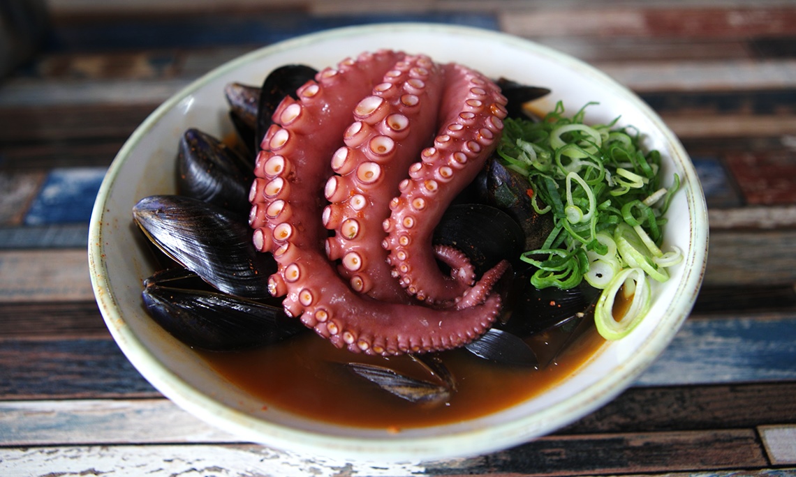 盛滿新鮮濟州海鮮的鯨魚拉麵