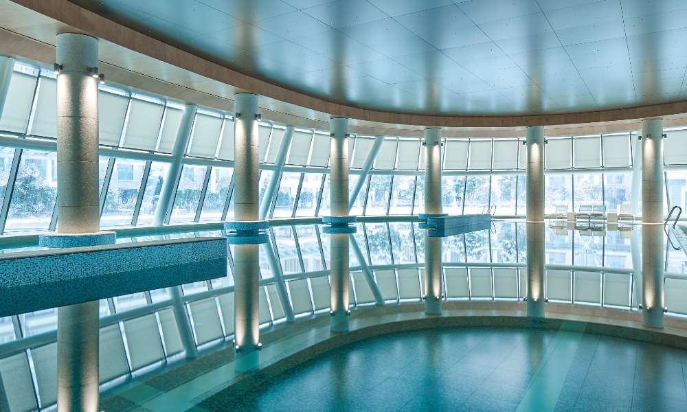 莫西爾游泳池的優美,在於透過玻璃窗傾斜而下的自然採光。這裡由寬敞的室內泳池和25米長的淺水戶外泳池構成,因攝氏30度的溫暖水溫,可一年四季享用。此外,還配有供兒童安全嬉水的專用池和可緩解疲勞的按摩浴缸以及可享用漢堡和飲料,撫慰轆轆飢腸的泳池邊咖啡廳。