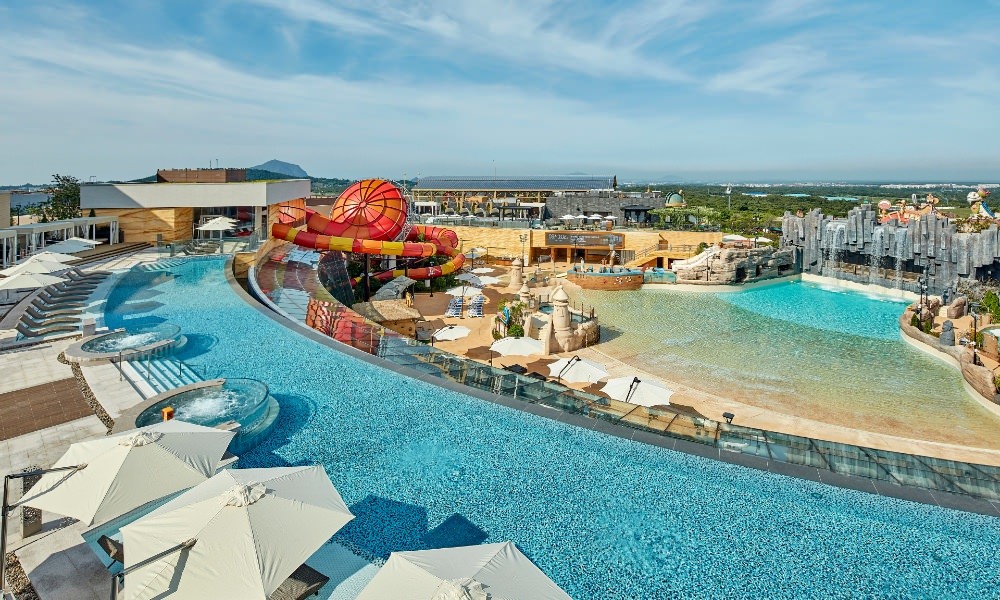 美麗的濟州西南部風光,遠處的山脊與神話主題公園以及神話水上樂園相融匯,展現出童話般的景觀。神話酒店天空泳池採用四季溫水泳池為賓呈獻難忘的特別回憶。白天可悠閑地享受游泳的安逸,傍晚又可感受沿著山脊夕陽西下的晚霞夢幻般的風光。到了夜晚,這裡又會變成幽暗燈光下只為成人準備的浪漫場所,而深受戀人們的喜愛。兩個按摩池、桑拿浴、私密的水邊小屋,更會讓遊客感受身臨海邊的愜意與浪漫。 [園由於設備定期維護暫時關閉並停止運營]