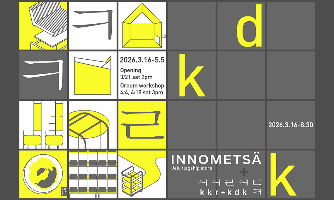 This special exhibition in Jeju features architect Kim Kyungran (kkr) and photographer Kim Do-gyun (kdk), each of whom has explored and interpreted the concept of “space” in their own distinct ways. Bringing together their works in a single setting, the exhibition reveals the texture of space through structure, function, and perspective—presented in alongside with Innometsa furniture. In celebration of Innometsa’s 20th anniversary, we invite you to join this meaningful occasion, which revisits the brand’s accumulated philosophy of space through the lens of contemporary art while exploring its future direction.