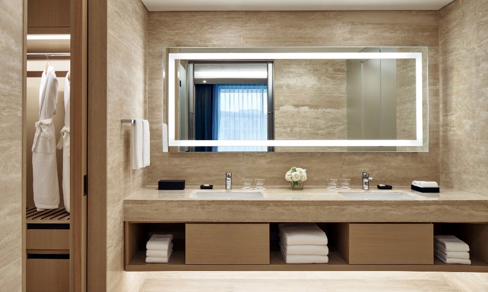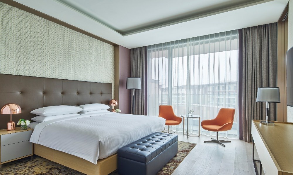萬豪酒店的豪華套房寬敞舒適,面積超出普通客房的兩倍,由安逸的客廳和舒適的卧室構成,可為訪客提供完美的休息時間。米白色與棕色系搭配的客廳演繹出溫馨的氛圍,與舒適的大床、充滿感性的燈光與飾品裝點的卧室相和諧,更為客房增添一份優雅。客房內還提供雀巢膠囊咖啡機與升級的客房迷你吧。設置於浴缸上方的玻璃電視,可讓您享受蒸汽桑拿帶來的套房專享高品質的休息。精選英國睡眠專家”This Works”的沐浴用品,天然植物成份讓您享受優質的沐浴體驗,清新的香氛更讓您倍感放鬆舒適。