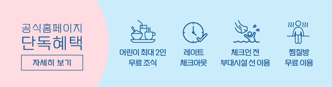 - [멤버 혜택] 서머셋: 탐모라 찜질방 무료 이용 혜택은 박당 1회 투숙 인원 기준으로 제공되며, 찜질복(1인 2천원)이 별도 부과됩니다.