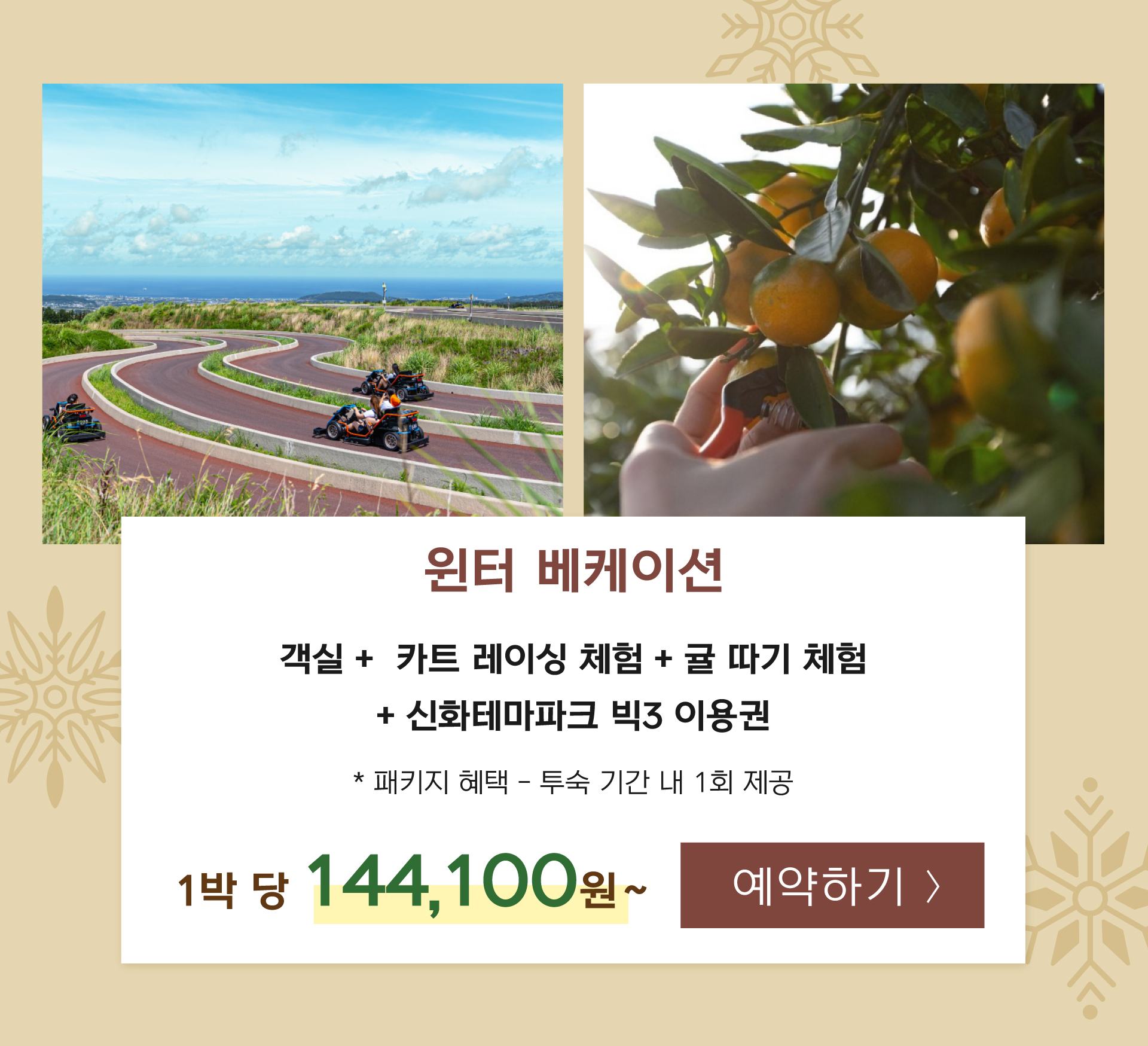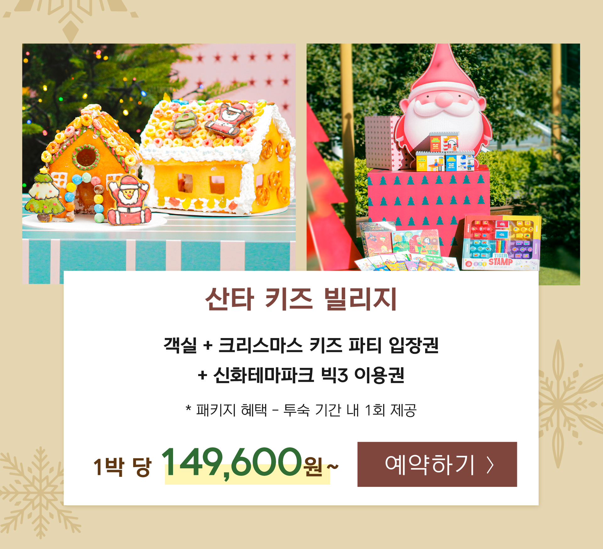 - 신화테마파크 빅3 이용권 혜택은 투숙 기간 내 1회, 투숙인원 기준으로 제공됩니다.