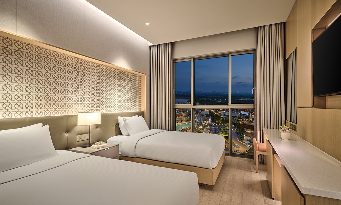 神話酒店的標準間高級雙床房,配置了兩張單人床,為來賓提供私密的睡眠環境。木質的傢具和簡潔的壁紙及裝飾顯得時尚簡約。房間內配有可為來賓提供舒適睡眠環境的寢具以及可輕鬆調控室內溫度和照明的智能系統。此外,還為客人準備了USB埠,提供免費Wifi服務。浴室內備有富含維生素與歐米伽成份的麵包樹精油沐浴用品。