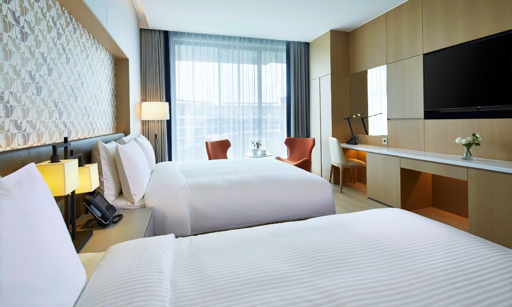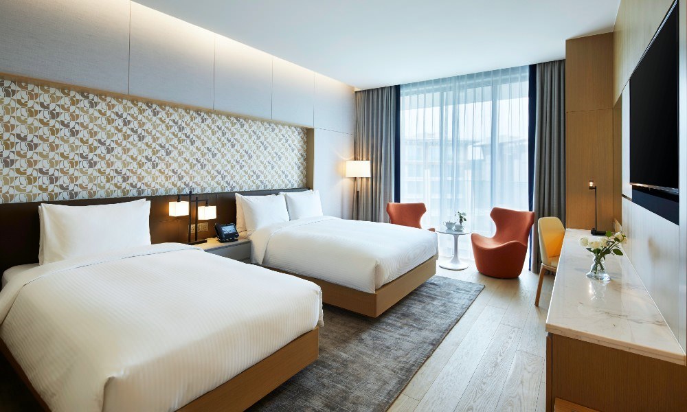 位於5,6樓的客房窗戶俯瞰庭園景觀,可讓您的身心得到舒緩。為了讓您的家庭旅行更加愉快,房間以一張雙人床和一張單人床為中心,用木質的傢具和簡潔的壁紙及裝飾完成了時尚簡約的裝修風格,而高級寢具讓您的休息更加舒適。房間內配有可輕鬆調控室內溫度和照明的智能系統、USB埠、免費Wifi等,為客人提供各種便利環境。為了更加方便來賓的使用,把浴缸和洗漱台、衛生間、淋浴室分割開來,設計成了分離式浴室,並備有富含維他命與歐米伽成份的猴麵包樹油沐浴用品。