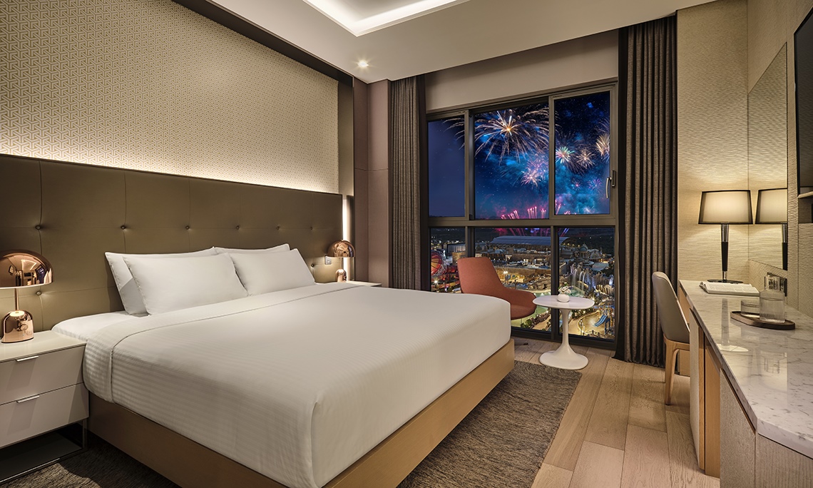 テレビでお気に入りのエンターテイメントをお楽しみいただけます。このルームタイプはスカイプールで繰り広げられるDJのライブ音楽を一緒にお楽しみいただけます。