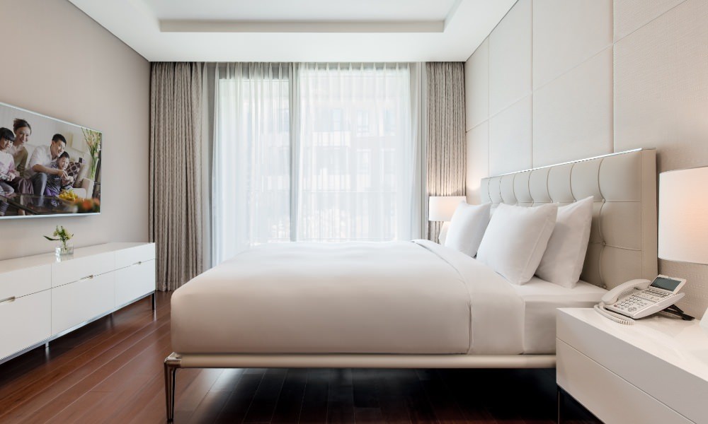 サマセット済州神話ワールドのファミリースイートは、家族ぐるみの標準客室をご提示いたします。大人5名、子供4人まで宿泊できる154㎡の広いスペースに、3つの寝室、2つの浴室、キッチンを完備し、家族でいらっしゃるお客様にゆったりとした時間を提供いたします。3つの寝室にはそれぞれキング、クイーン、シングルサイズのベットが置かれており、ワインセラー、オーブン、食器洗浄機、大型冷蔵庫、洗濯機、乾燥機など、プレミアムな家電と食器を取り揃えております。ご家族みんなで料理を作ってみるのもいいでしょう。モダンなインテリアに、家族みんなでくつろげるソファーとダイニングテーブル、広い収納スペース、日当たりのいいバルコニーまで、夢に見ていた優雅なライフスタイルをご体験ください。
